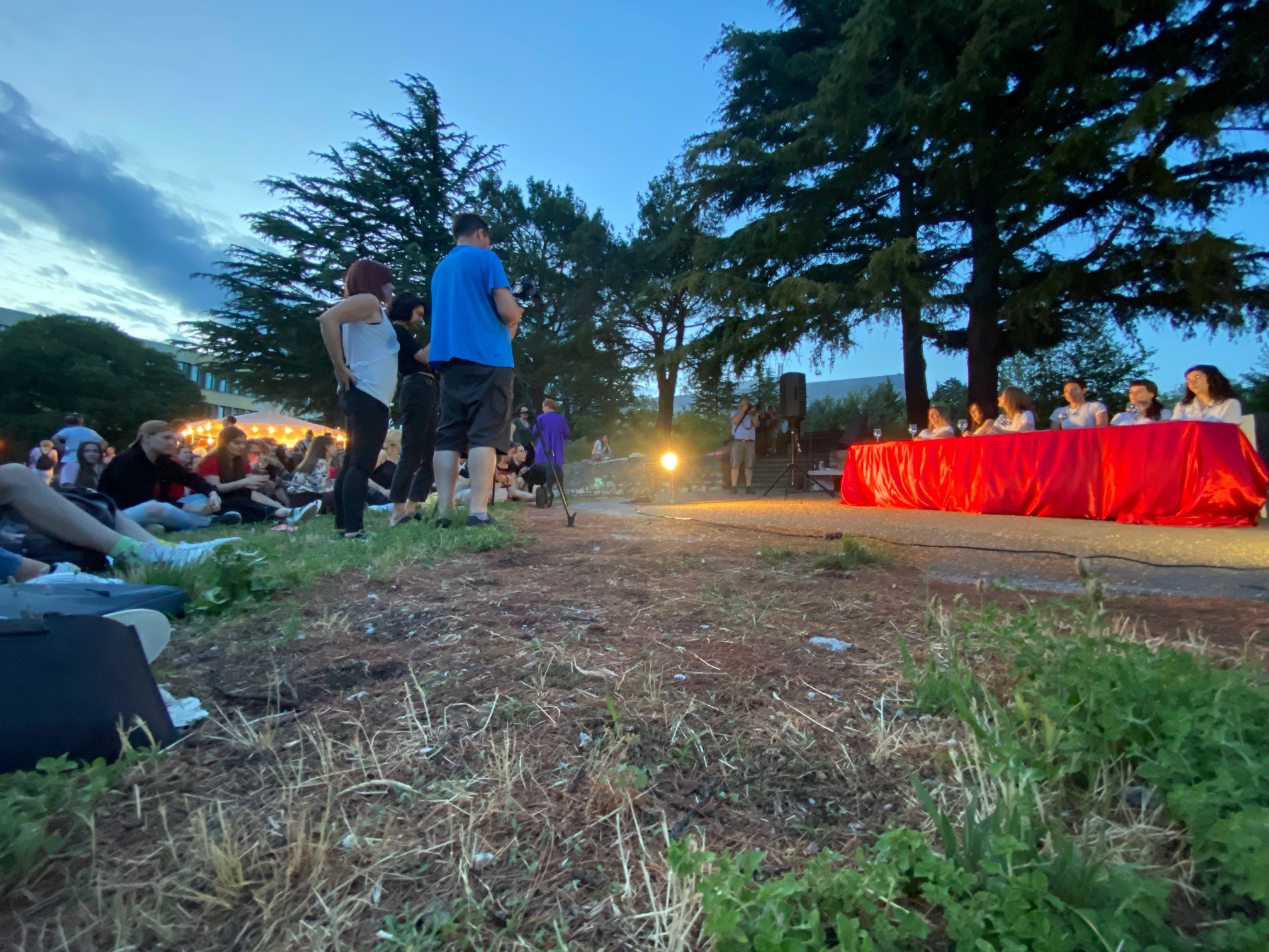 As part of the EU project "They Live: Student life revealed through context-based art practices", students from the University of Rijeka put on a particularly interesting performance with a clear message. In the natural environment of the university campus, the audience could hear about the students' problems in a relaxed atmosphere. The performance entitled "The mouth full of rights" occurred on June 8, 2022, at 9:00 pm.